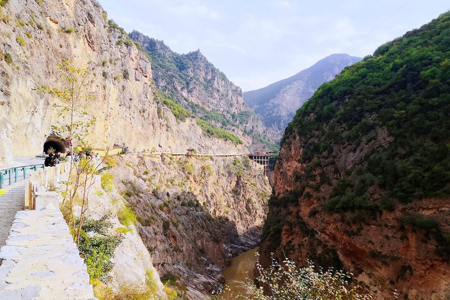 鄭國(guó)渠的秋日,褪去了往日的青綠,樹枝黃櫨繽紛點(diǎn)綴,斑斕的山色勾勒出屬于秋的浪漫,美了山谷。行走其間,美不勝收。(陳杰)