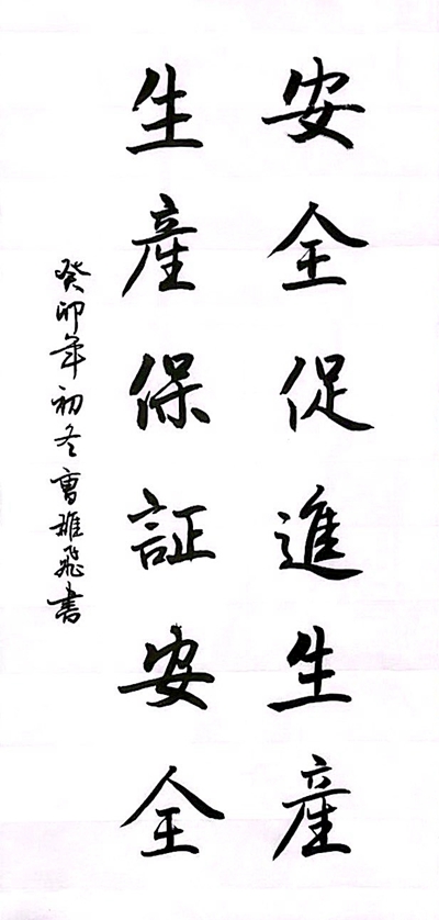 【百日安全生產行動】曹雄飛書法:安全系著你我他 幸福連結千萬家