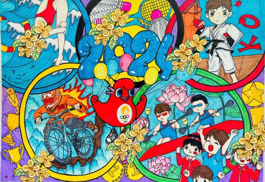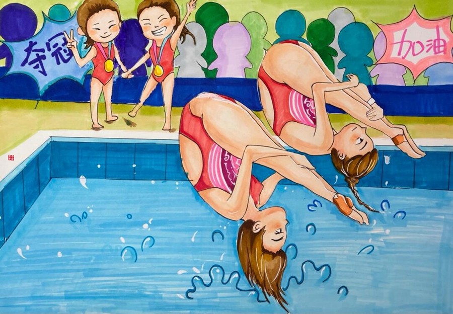 沈淵博繪畫:為中國(guó)體育健兒喝彩!